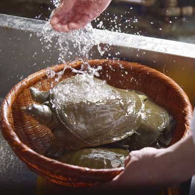すっぽんをまるごと使わず、職人の手で捌いて不純物や爪などを除去して下処理してます。